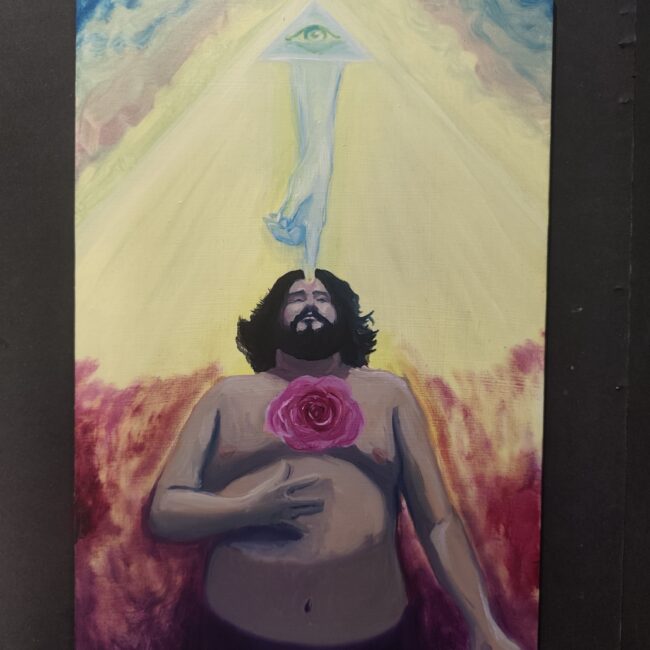 La quatrième toile célèbre cet instant : le moment où le cœur, après avoir traversé les ombres, s’ouvre comme une rose à l’aube. Chaque pétale révèle une nouvelle couche d’amour, de tendresse et d’abandon. C’est le toucher de la grâce — l’éveil de la conscience qui reconnaît la beauté dans la souffrance même et transforme la douleur en compassion.
